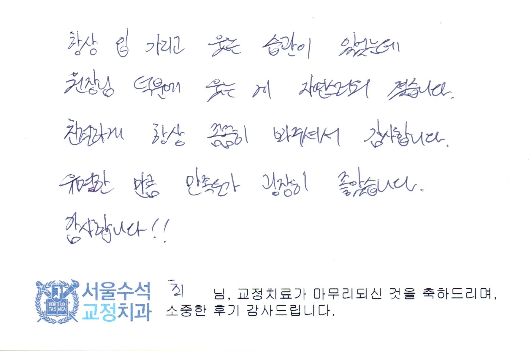 서울수석치과교정과치과의원 | 고정민 | 사업자등록번호:780-71-00047 | TEL : 041-568-2874